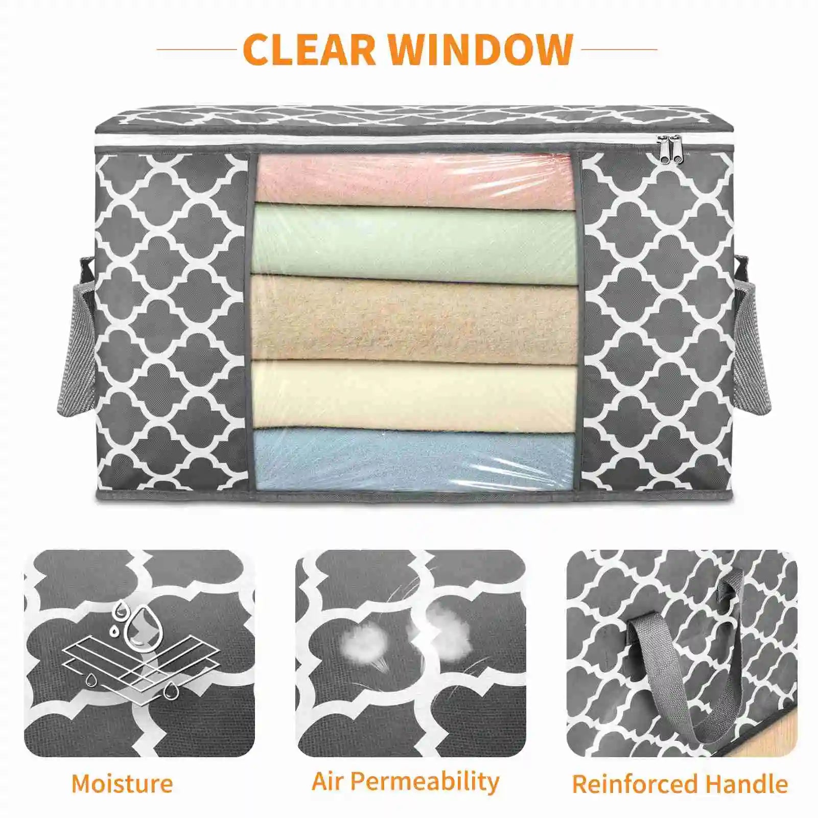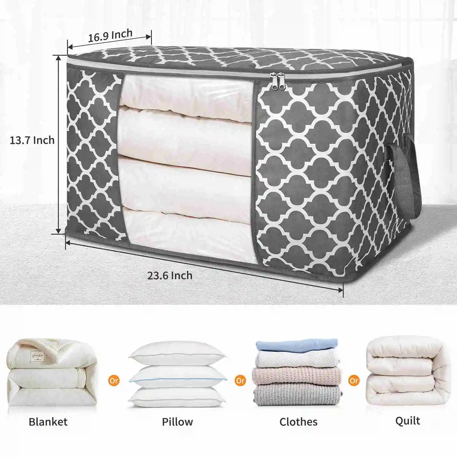 Clothes storage bag printed with 2 pieces of gray color for storing clothes, blankets, toys, bedding