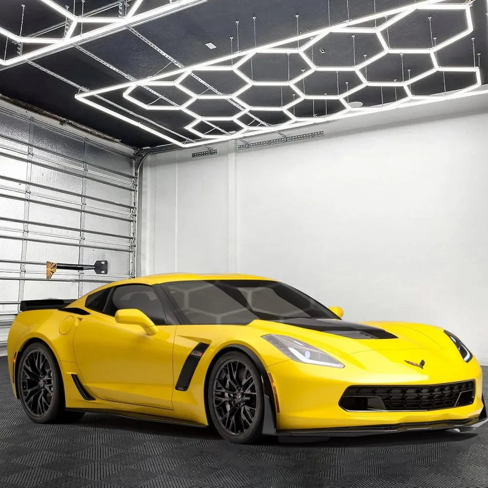 ✅【Super Bright & 5000K Protect Eeyes】The Hexagon Garage LED Lighting System utilizes high quality LED beads. With a total power of 900 watts, 108,000 lumens of intense light output. This high brightness design can effectively enhance the lighting level of garages, auto body stores, offices, stores, game rooms, basements and other places to achieve a brighter and more modern environment. The use of high-quality LED components also means long life and low energy consumption, making it a quality choice in the lighting industry. Light color is 5000K(Nature white) which is the best color temperature for daylight using, providing the best car lighting experience.