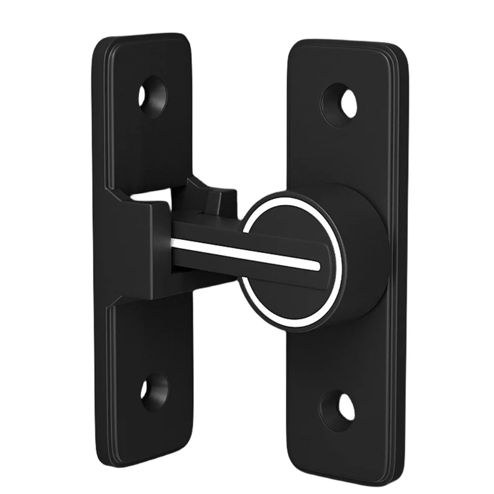 1. and Corrosion-Resistant: Made of zinc alloy, this heavy-duty 90-degree barn door lock hardware features a matte black surface that effectively isolates oxygen from the air. It is sturdy, corrosion-resistant, and built to last, ensuring durability and reliability.