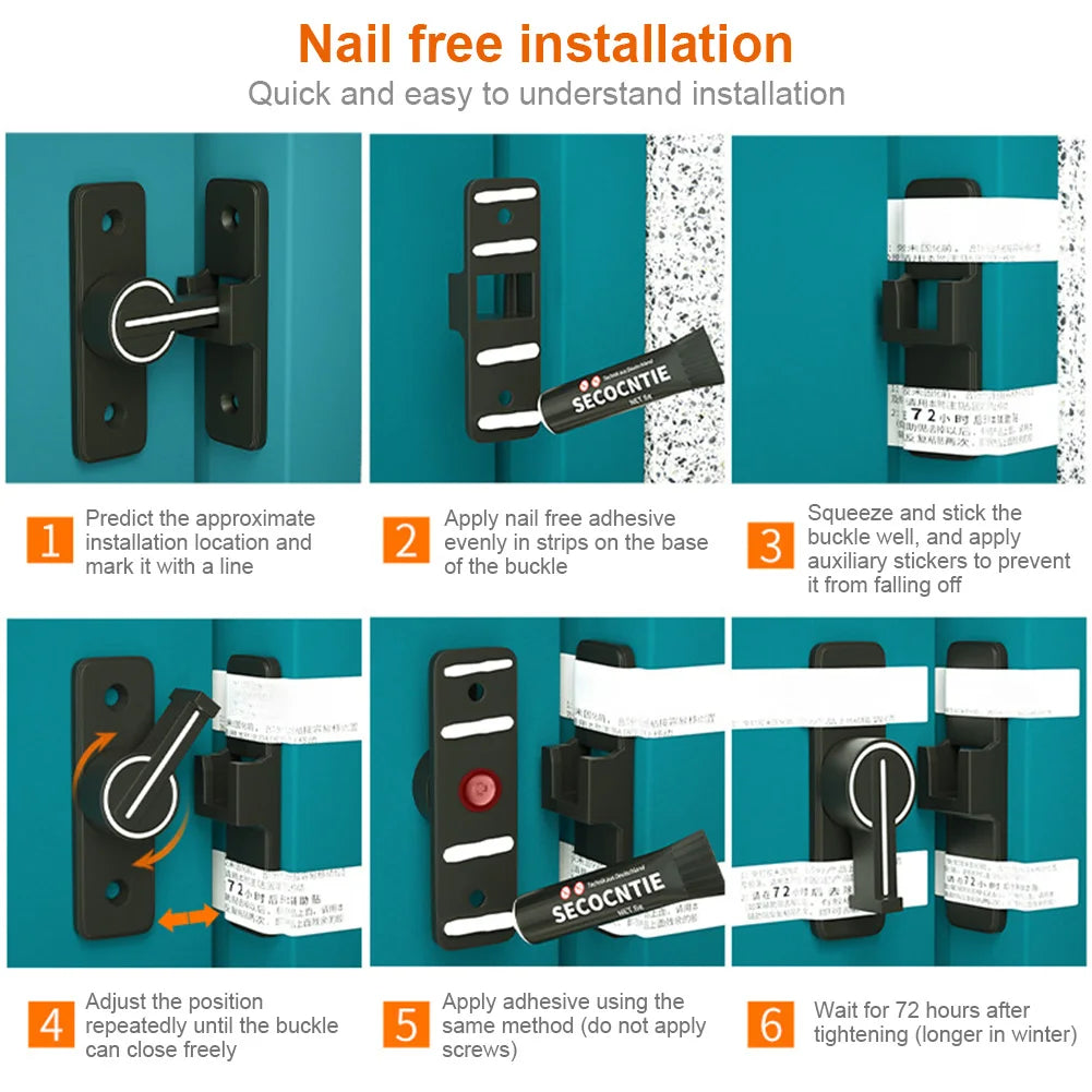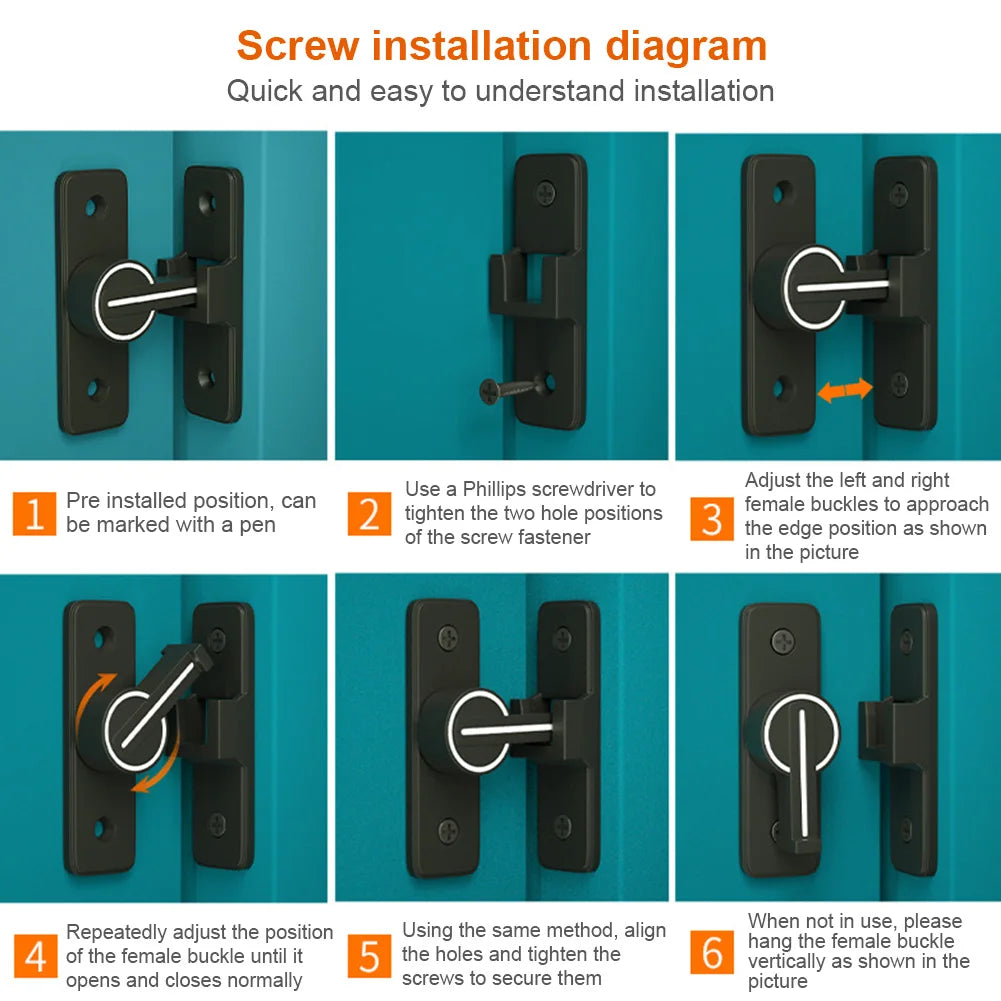4. Easy Installation: Begin by using a drill to locate and drill holes in the edges of the door or window. Then, use a screwdriver and screws to install the heavy-duty gate door bolt and fixture onto the door or window for easy installation. Follow the step-by-step instructions provided in the diagram for a hassle-free setup.